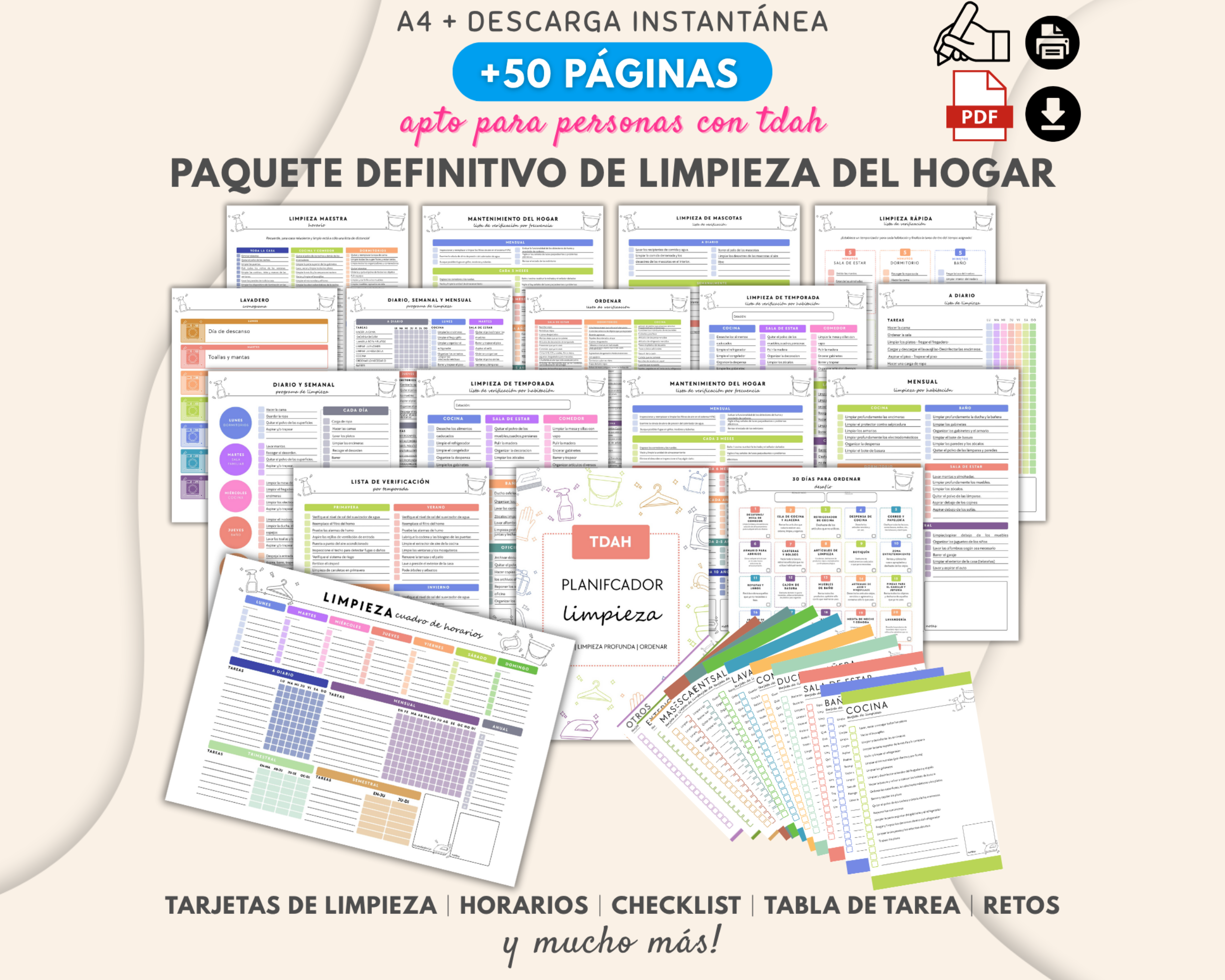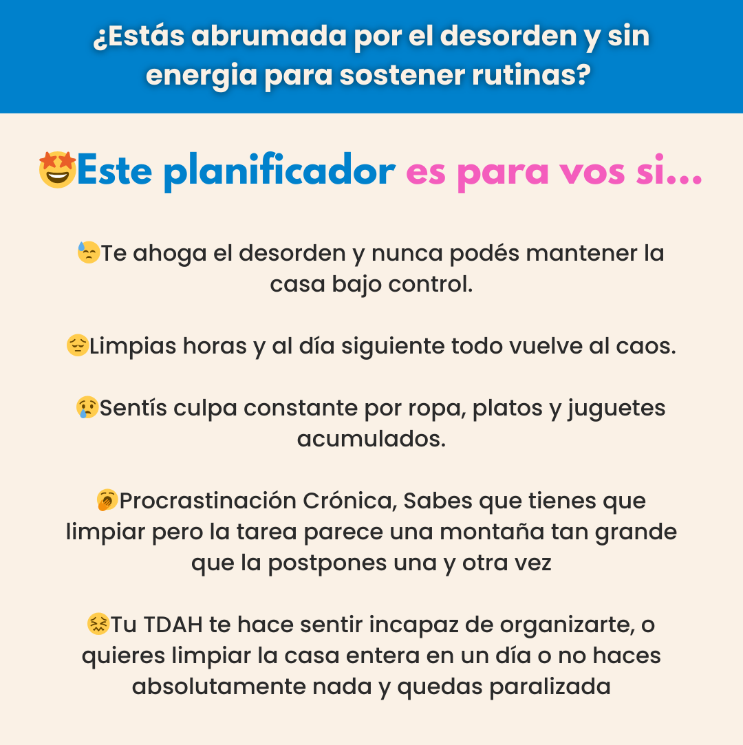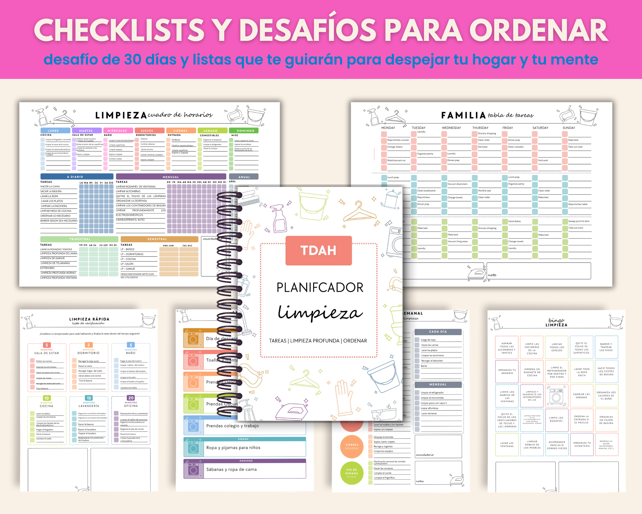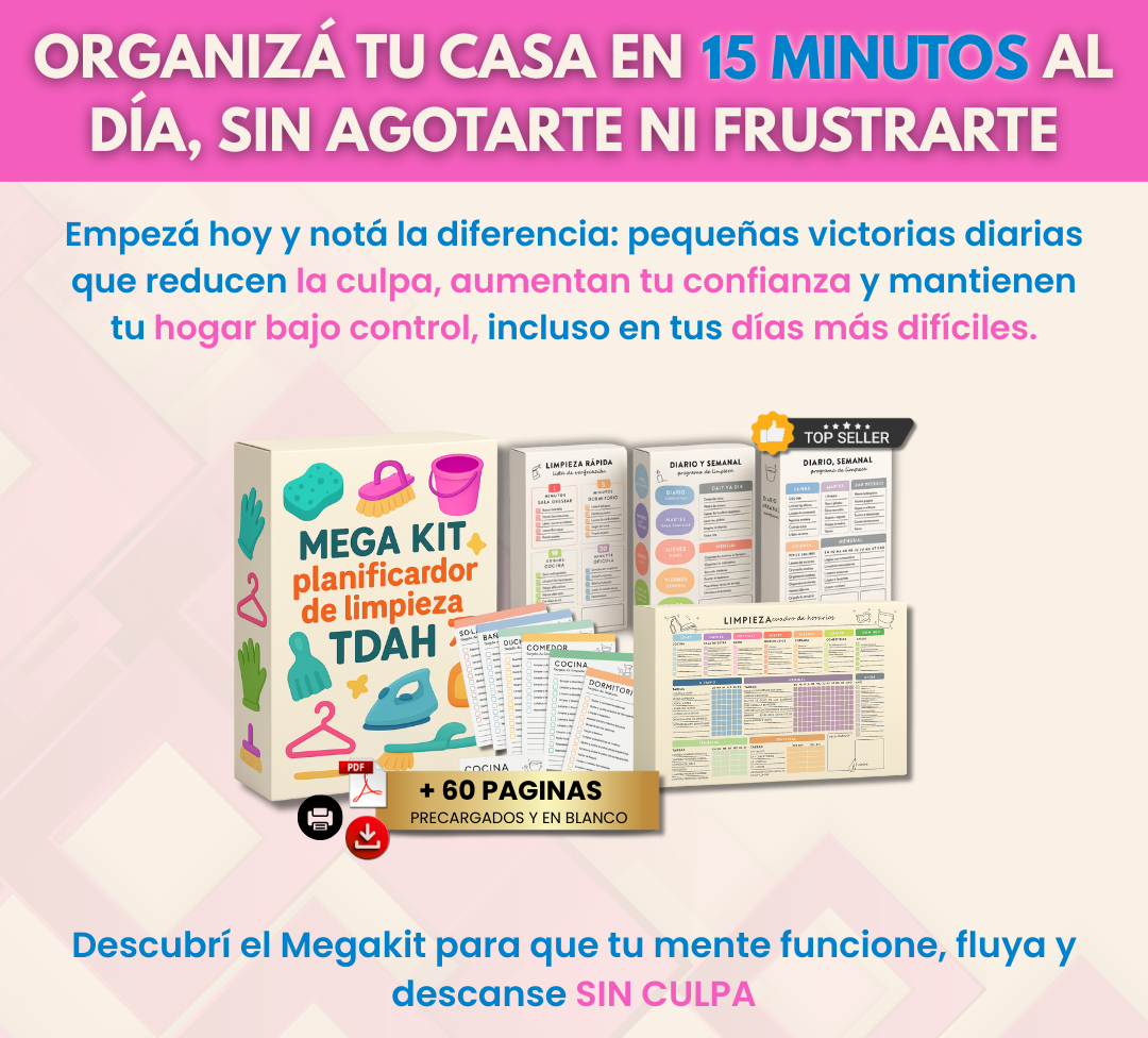 ✨ SOLO POR HOY: Combo MEGA KIT PLANTILLAS DE LIMPIEZA PARA TDAH 3x1 pagas 1 y te llevas 3 planificadores y además TE REGALAMOS